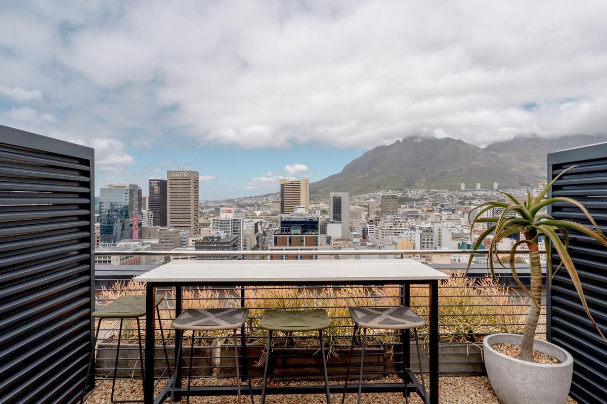 Live above the city with Table Mountain and City Bowl panoramas from a private rooftop terrace; walk to Bree Street, Bo Kaap and V&A Waterfront — two-bed, two-bath.
