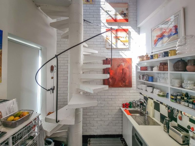Live overlooking the City Bowl square — a loft-style urban retreat with industrial windows, spiral staircase and a rare 35 m² wind-sheltered terrace, one bedroom, one bathroom and secure parking.