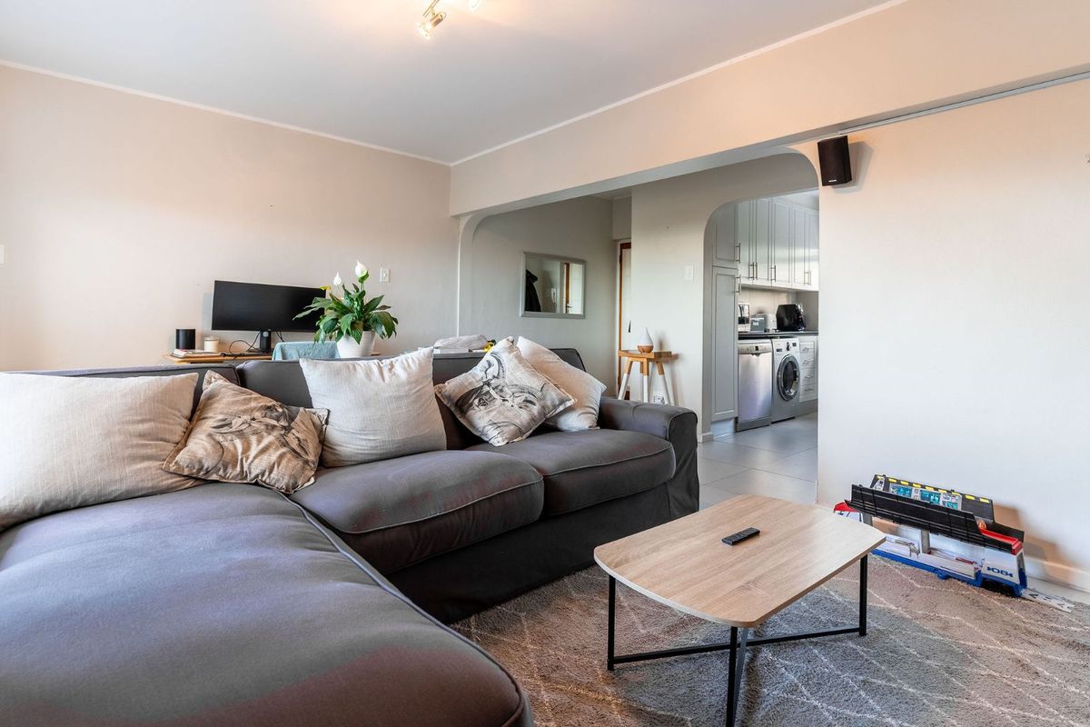 Wake up to northerly Table Mountain and city views from this light, lock-up-and-go apartment near Harfield Village — balcony, communal gardens, galley kitchen, two bedrooms and one bathroom.