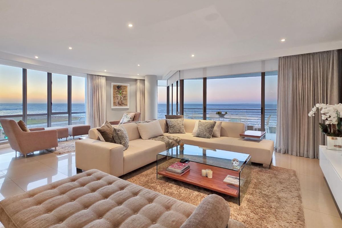 Premium coastal living on Mouille Point's Platinum Mile with sea, mountain and whale-watching views. Italian marble kitchen, balconies off every bedroom, communal pool, gym and three parking bays.
