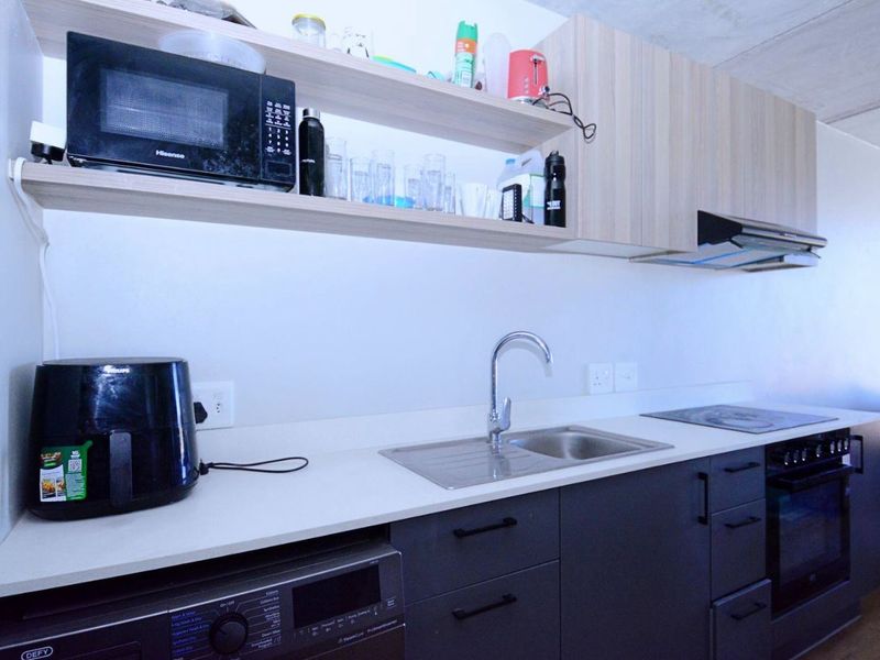 Low-maintenance urban living ideal for young professionals and students in a secure, well-managed complex close to local amenities, featuring a modern open-plan kitchen, jungle gym, one bedroom, one bathroom.