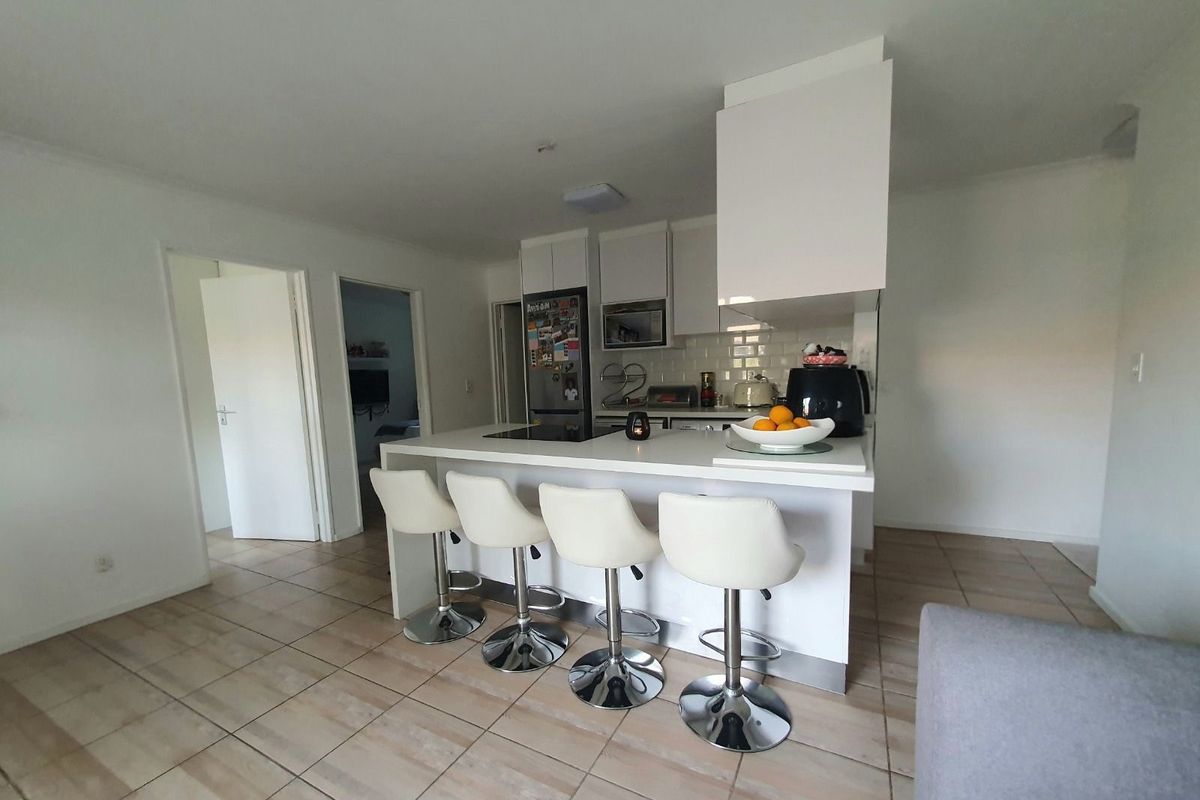 Step inside to a light-filled open-plan lounge and dining area which flows onto a small private balcony, perfect for morning coffee or relaxing outdoors. The lounge features a built-in desk and cupboard, making it an ideal space for anyone who works from home. The adjacent modern kitchen offers generous cupboard space, room for appliances, and a breakfast bar for casual dining.