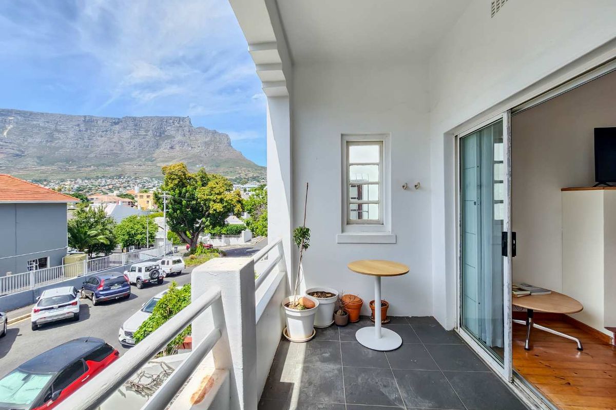 Enjoy urban living with Table Mountain panoramas from a private balcony; open-plan kitchen flows into the living area. One bedroom, one bathroom, plenty of built-in storage, street parking.
