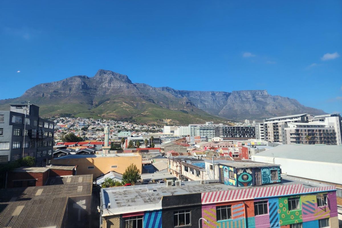 Experience creative urban living in Woodstock — light-filled 42m² studio with panoramic Table Mountain and harbour views, rooftop pool, modern kitchenette, secure parking bay; one bedroom, one bath.