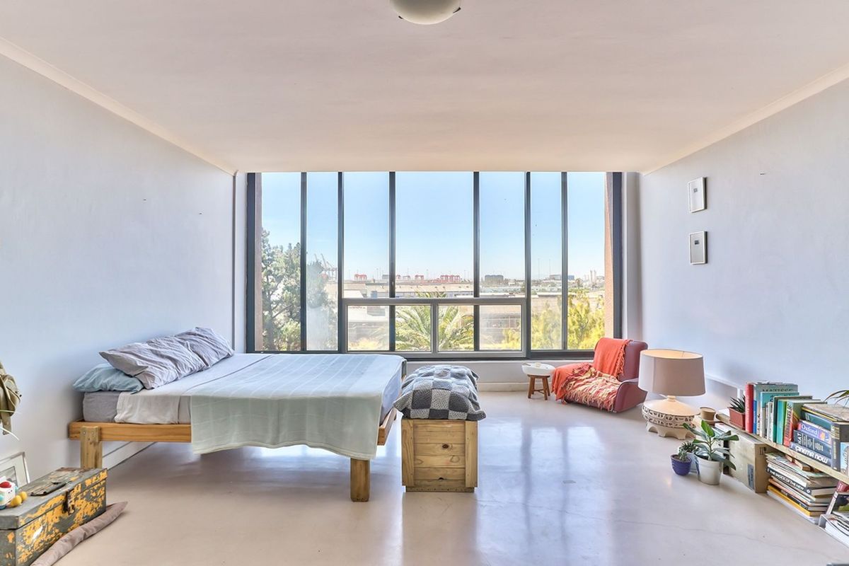 Harbour-view apartment in vibrant Woodstock, flooded with morning sun through floor-to-ceiling sliders, rooftop pool and 360-degree braai area—ideal Airbnb or first-time buyer. One bedroom, one bath.
