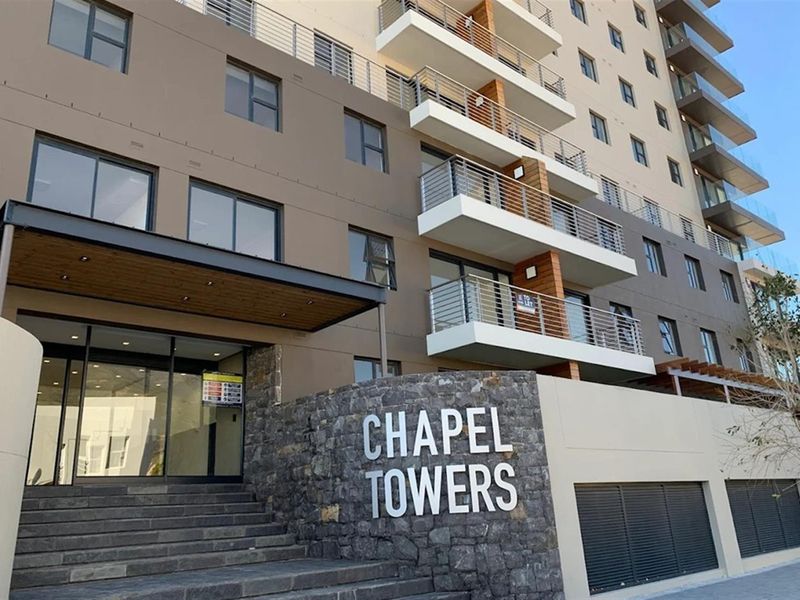 City-centre living with panoramic Table Mountain and harbour views, minutes from the V&A Waterfront and universities; Chapel Towers offers a rooftop pool and entertainment deck, two-bedroom apartment with secure parking.