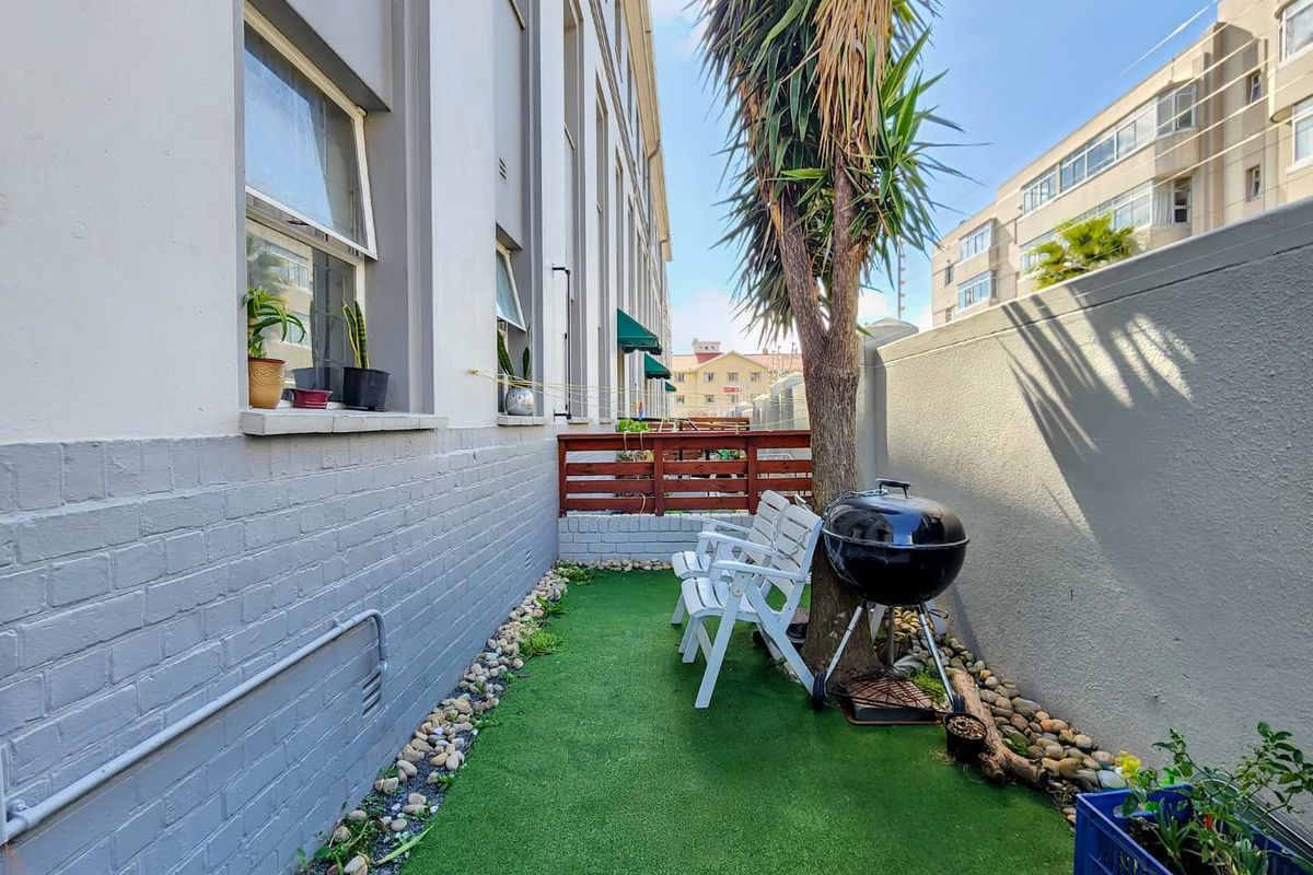Relaxed central city living with 24-hour security, private street entrance and enclosed courtyard perfect for braai, plus communal pool and secure parking — two-bedroom, one-bath apartment.