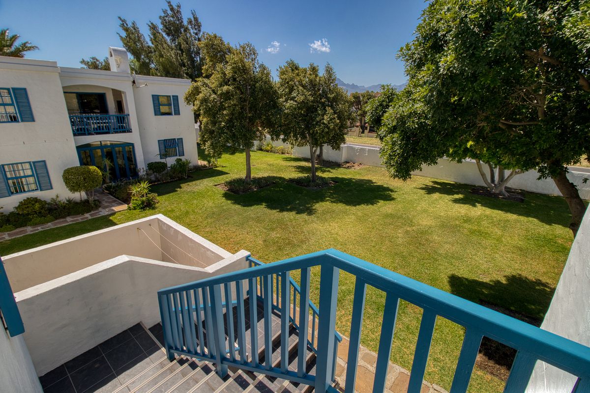 Experience a touch of the Mediterranean right here in Gordons Bay, just a short drive from Cape Town. The Silversands complex immediately impresses with its crisp white walls, vibrant blue shutters, and elegant arched balconies, reminiscent of the Greek Isles, all set against the striking backdrop of the Helderberg mountains.