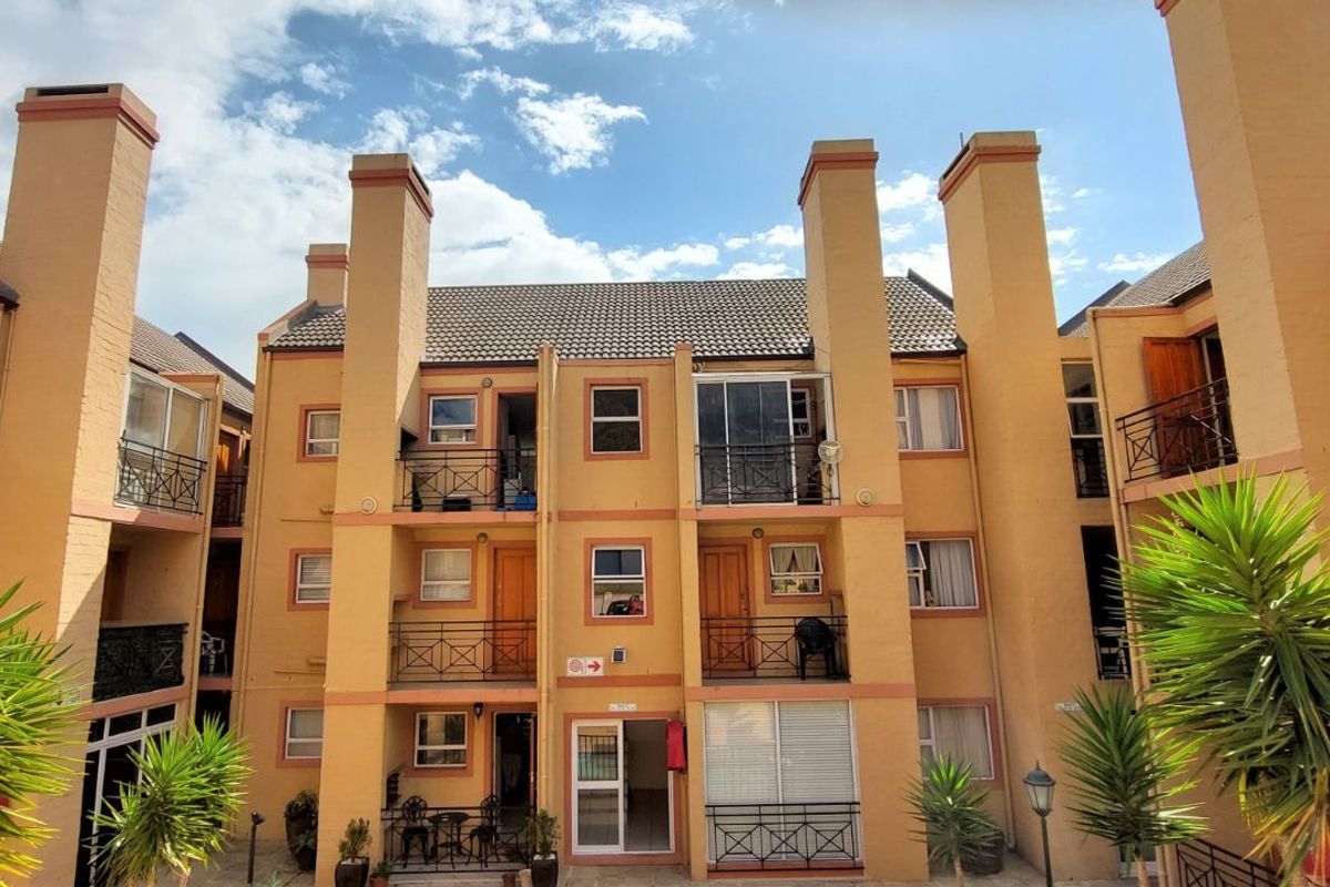 This sunny two bedroom apartment with laminated flooring throughout and one full bathroom is conveniently located on the ground floor. You are more than welcome to add your own flower pots outside. Open plan kitchen with hob, oven and extractor fan with extra cupboard space added. The original balcony with a built-in braai was closed in and converted into a laundry room. Extra storage facility and one parking space available. A Must See!!