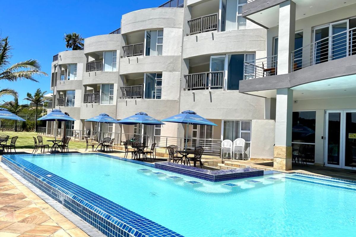 Coastal holiday lifestyle in Hartenbos's Riviera Wharf Hotel, short stroll to beach and dining. Turnkey, fully furnished 1-bedroom with private balcony sea views, open-plan living and covered parking.