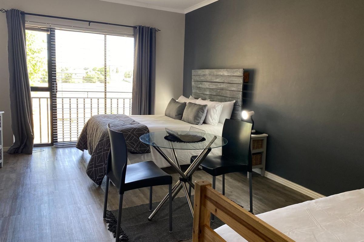 Low-maintenance urban edge living in Cederberg Estate, Kuils River — mountain views toward Simonsberg, communal pool and modern kitchen in a 28m² studio; parking bay and carport.