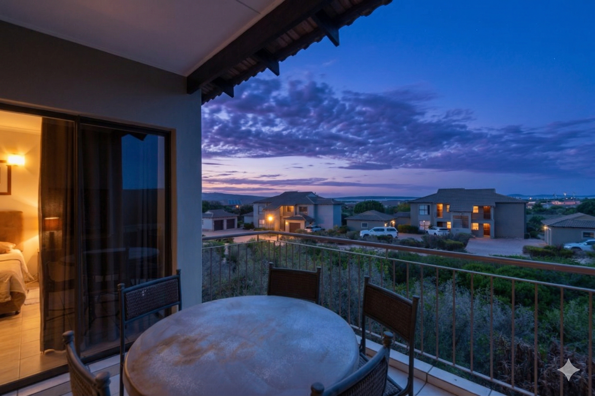 Relaxed estate living in Langebaan Country Estate's Perkijt Village, with access to golf, padel and trails; private 3-bed, 2-bath apartment with distant lagoon views and single covered parking.