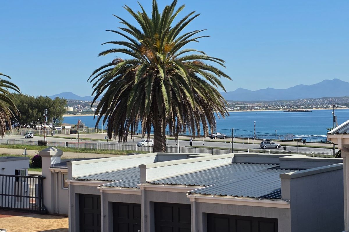 Coastal living in Mossel Bay with Blue Flag beach across the street, adjustable louvre-canopy balcony and sea views; refurbished kitchen, holiday rental potential, two beds, 1.5 baths, single garage.