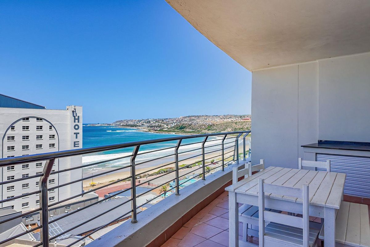 Coastal living steps from Diaz Beach and the Diaz Hotel, offering a ninth-floor corner apartment with sweeping sea views and a generous balcony. Two bedrooms, one bath, secure basement parking.
