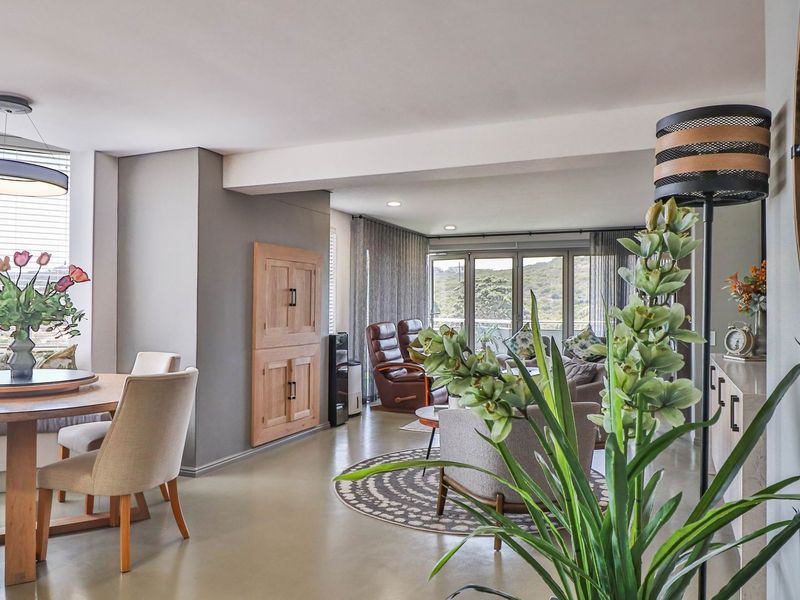 Coastal lifestyle with sea views and a veranda braai for entertaining. Modern kitchen, two en‑suite bedrooms, double automated garage, lift access and quick N2 route to George or Cape Town.