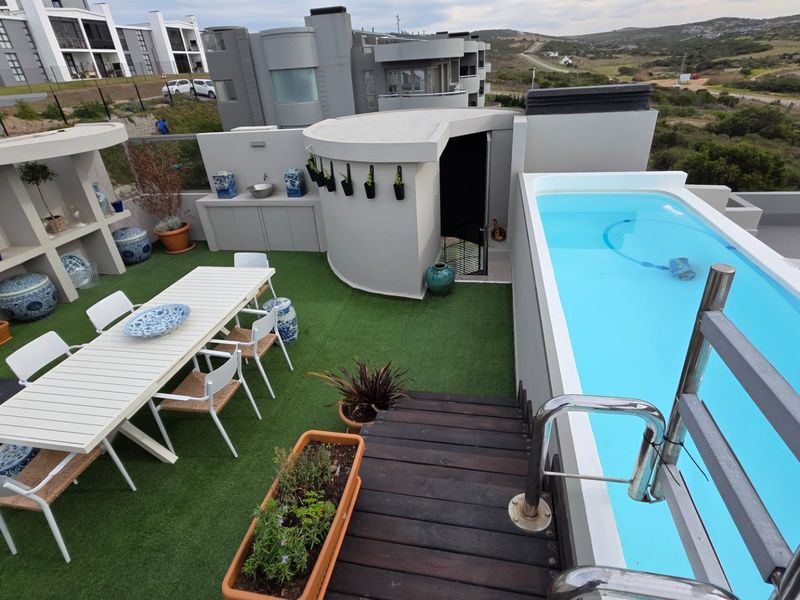 2 bedrooms, 2 bathrooms, 209 m² apartment with rooftop garden, pool, and parking near Mossel Bay and Hartenbos.