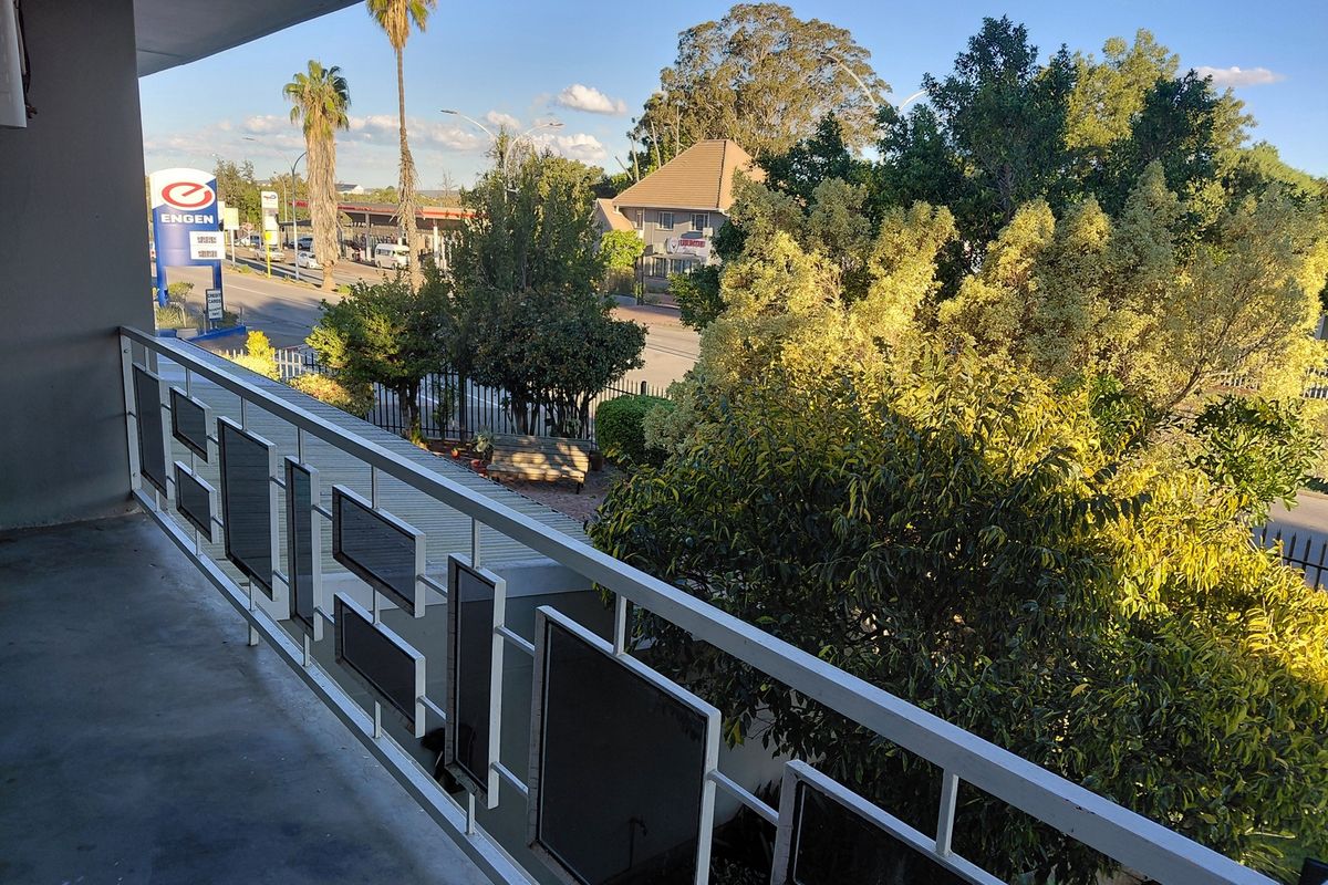 Sip morning coffee on your private balcony with sweeping Swartberg mountain views in a sunlit open-plan first-floor apartment in a secure gated complex — one bedroom, one bath, undercover parking.