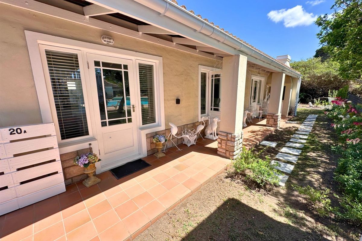Let’s begin where your day will probably begin... and end... and somehow disappear in between — the patio and garden. A covered veranda stretches along the front of the home, looking out over greenery and the sparkling pool beyond. You’re close enough to feel the holiday energy, but tucked away enough to keep it peaceful. The gated garden gives you breathing room, birdlife, and braai potential — plus just enough space to justify buying outdoor cushions you definitely don’t need. There are shady spots, sunny spots, and that one perfect chair you’ll mentally claim within five minutes.