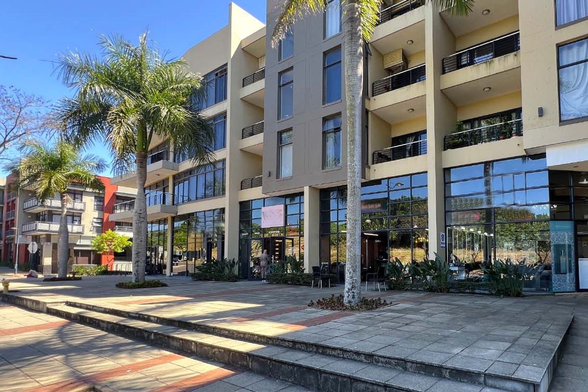 Prominent Umhlanga Ridge address offering exceptional exposure and easy N2/Gateway access; ground-floor open-plan space with floor-to-ceiling windows and balcony, direct parking and 24-hour security.