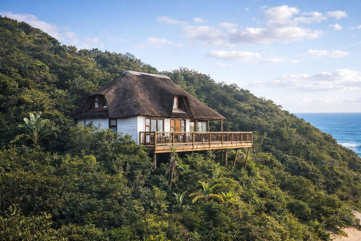 Relaxed coastal living in an exclusive gated estate, with cottage-style thatched roof and private garden backing a lush green belt—freestanding villa offering three bedrooms and two bathrooms.