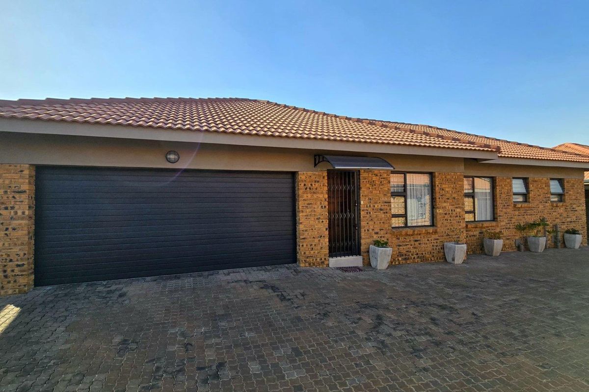 3-bedroom, 2-bathroom cluster home in New Redruth, Alberton; 200 m² floor size, 323 m² land size, double garage.
