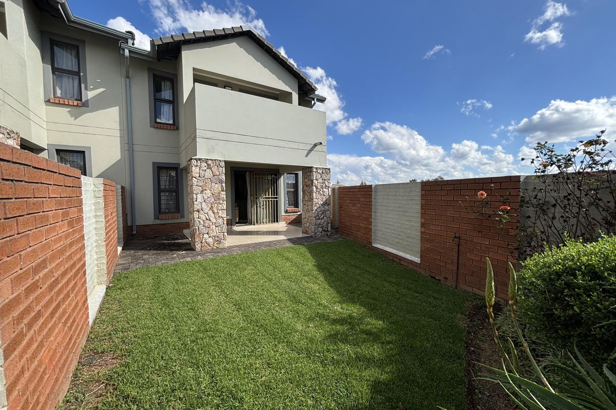Entertainer's duplex lifestyle in Kyalami Hills, minutes from schools and shopping, with a covered patio overlooking a private garden and contemporary kitchen. Three bedrooms, 2.5 baths.