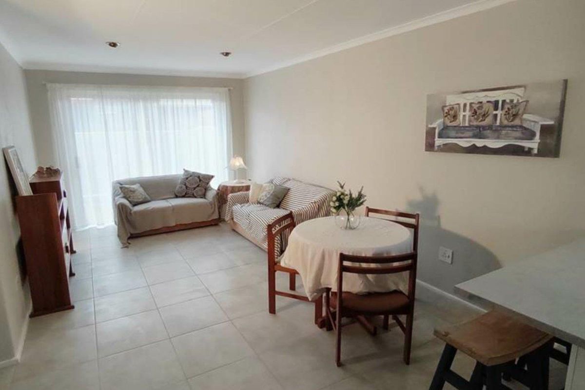 The kitchen is open plan to the light filled living room that has sliding doors that open to the back garden. The garden is just big enough for some flower beds on the one side and has a covered patio side where you can braai and entertain friends and family.