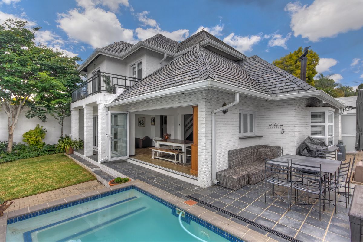 Entertain effortlessly in Bryanston’s secure, leafy neighbourhood with a private pool, balconies and modern Caesarstone kitchen — five bedrooms, 3.5 bathrooms and double automated garage.