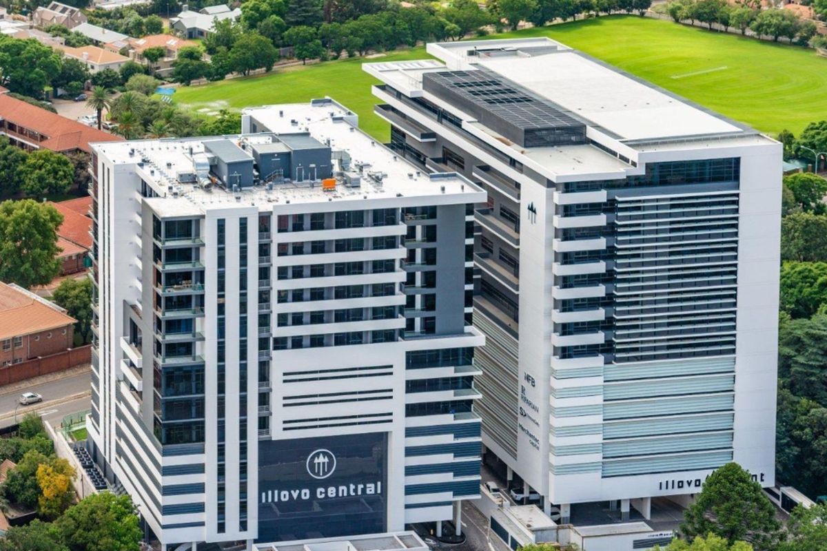 Position your company in Illovo Central's energetic commercial hub with panoramic city views from floor-to-ceiling windows, flexible 413 m² layout and convenient covered plus open parking.