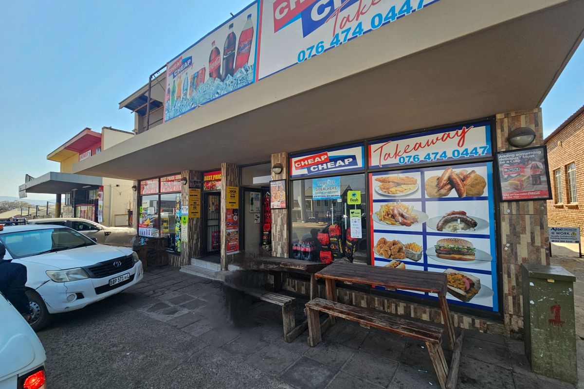 Capture Lydenburg footfall on the main street — two street-front shops with expansive display windows, kitchen areas, prepaid meters and two bathrooms, ideal for retail or café operators.
