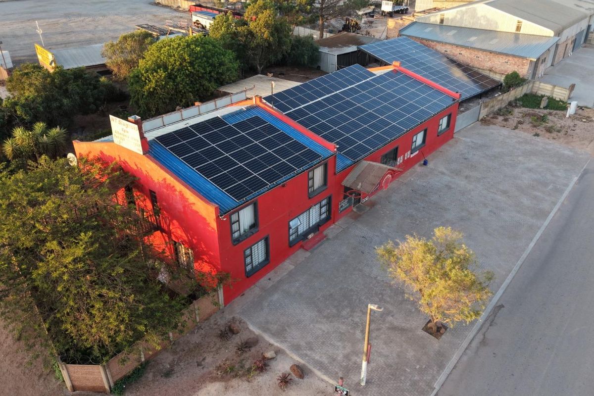 The residence itself is generously proportioned and designed for comfortable family living. The lower level features spacious open-plan living areas that flow effortlessly for both everyday living and entertaining. The kitchen is fitted with quality wooden cabinetry and is complemented by a separate scullery for additional functionality. Living areas extend to the outdoors, where a built-in braai creates a welcoming entertainment space. Upstairs, three well-sized bedrooms provide comfortable accommodation, including a main suite with private bathroom. Additional living space on this level offers flexibility for use as a lounge, study or family room, while a patio captures pleasant views over the surrounding area. An inverter room and substantial solar installation with high-capacity battery storage ensure energy efficiency and operational continuity.