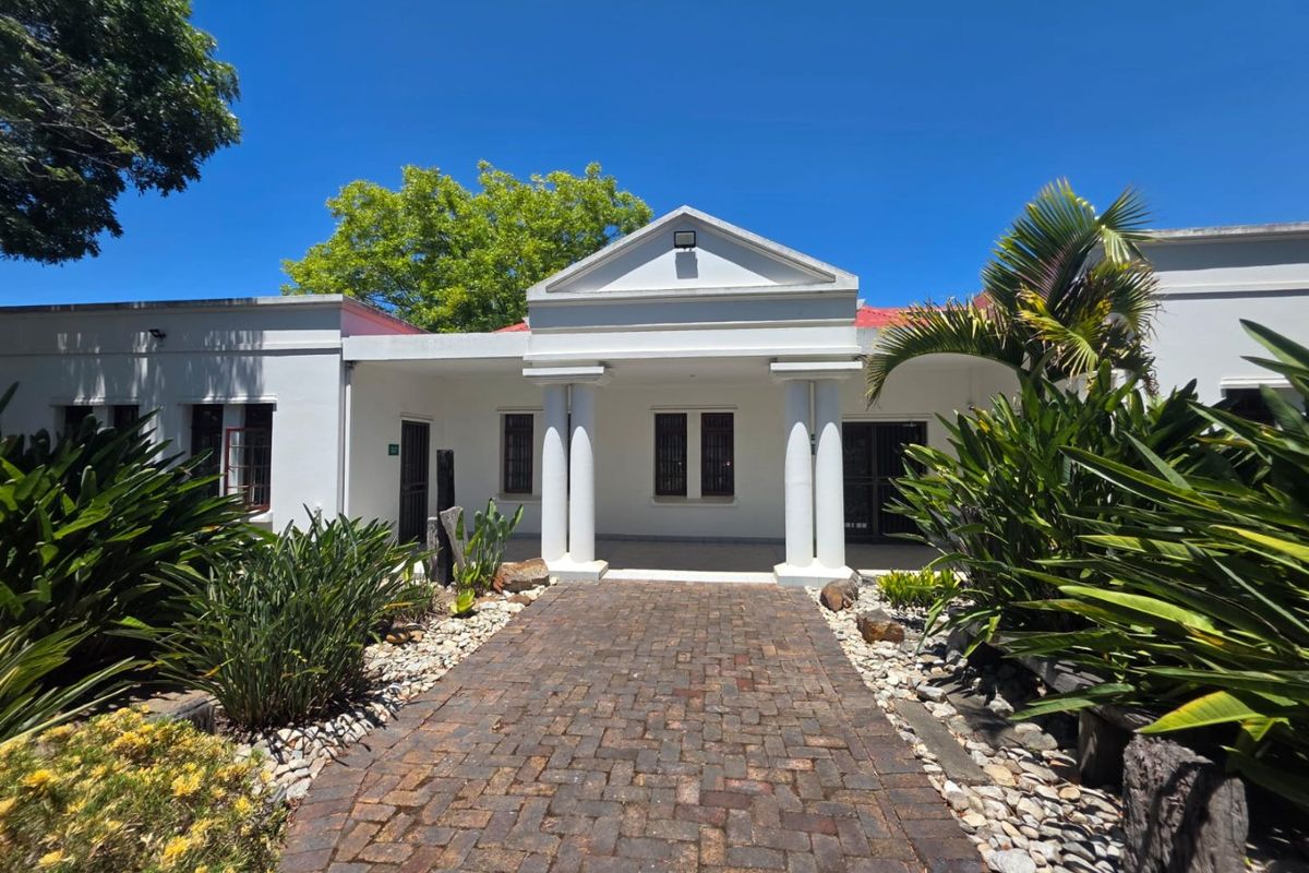 The practice area includes a fitted reception, three consulting or surgery rooms with wash basins and storage, a well-appointed conference room, laboratory or dispensary and recovery room, which can easily convert into a second bedroom if required. Covered stoep areas link the reception, conference and office spaces, creating a welcoming and efficient layout suitable for client-facing operations.