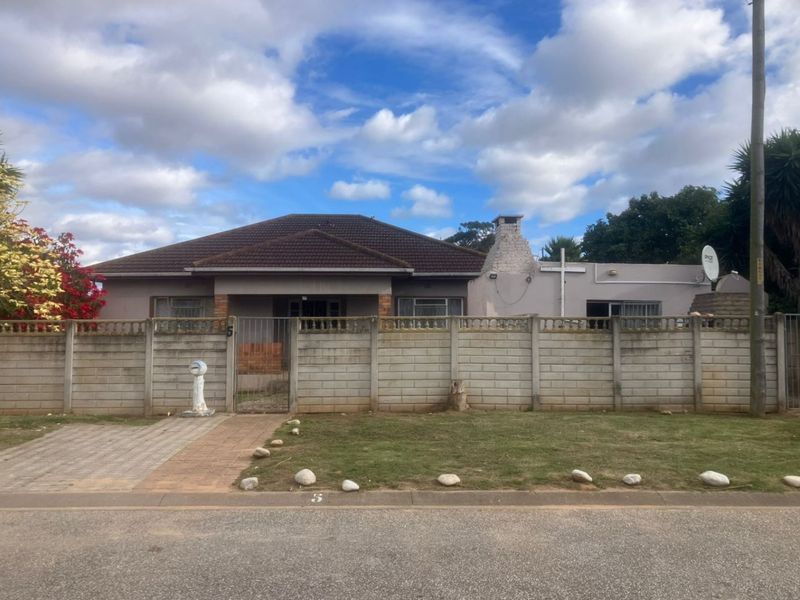 Entertainer's family home in a peaceful neighbourhood with built-in braai and swimming pool, solar-backed power and borehole; four bedrooms, one bathroom, single garage and multiple carports.