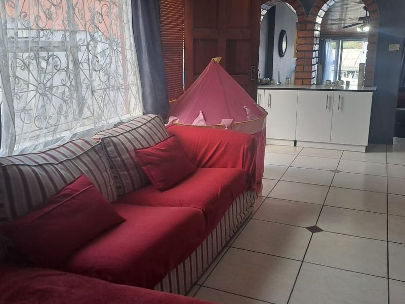 Family-friendly living in Buffalo Flats, East London, steps from schools, Empilweni Healthcare and Spar — low-maintenance yard and fully walled with full camera security; five bedrooms, two baths, double garage.