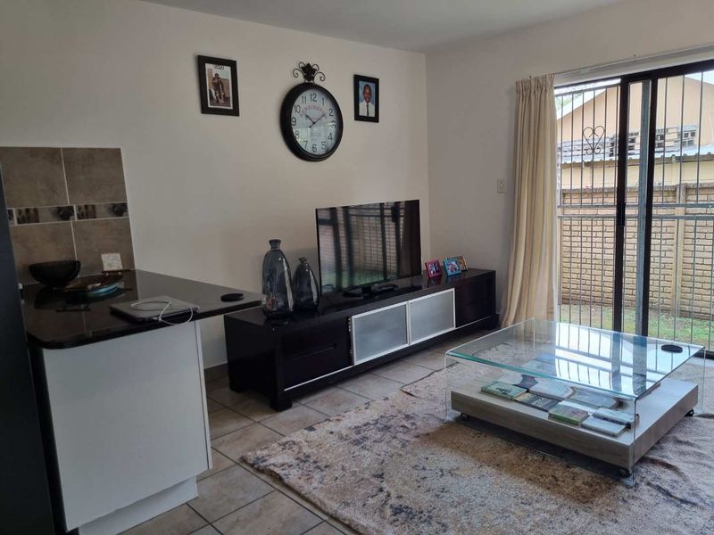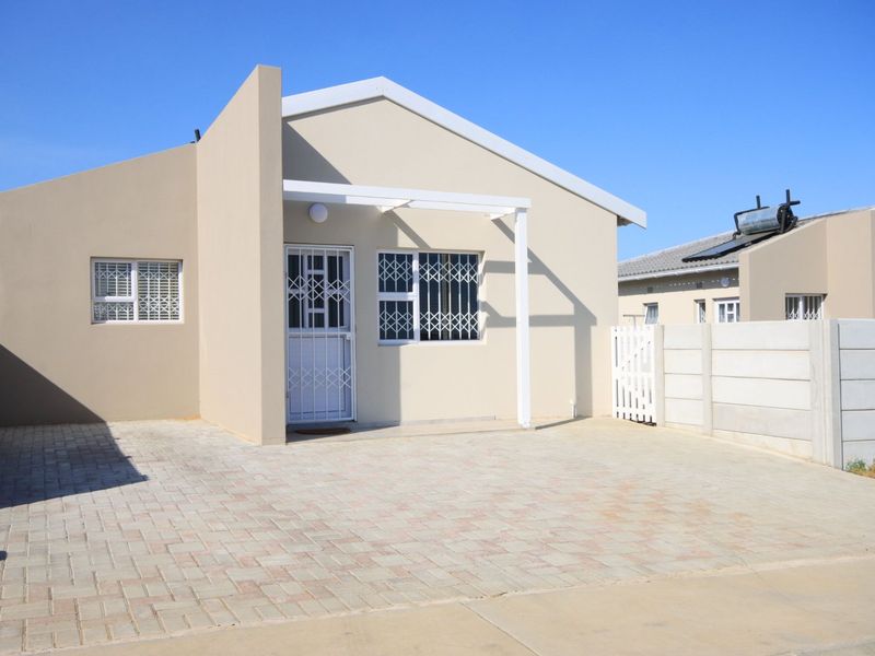Sun-filled open-plan home in a secure new gated estate, with remote phone-operated gate access, enclosed grassy backyard and tiled floors — two bedrooms, two bathrooms, low-maintenance living.