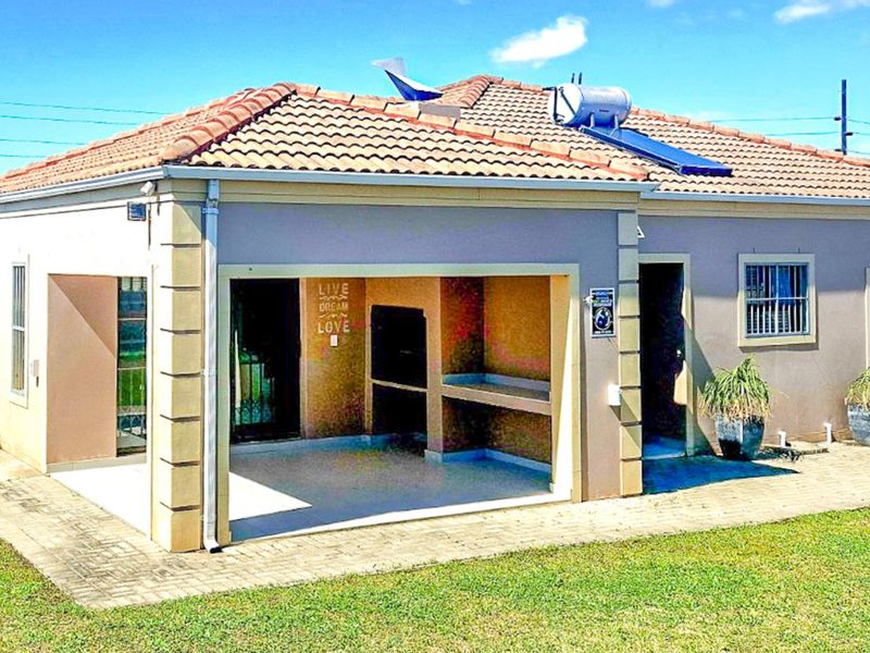 Social coastal living in Gonubie with pool and under-roof entertainment bar, main three-bed/three-bath home plus separate two-bedroom flatlet and double garage — perfect for family or rental.