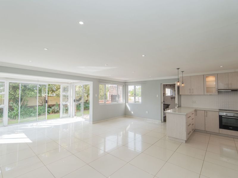 Entertainer's townhouse in prime Lorraine, minutes from shops and Virgin Active, featuring sunlit open-plan living, lush garden with built-in outdoor fireplace — 3 beds, 2 baths, double garage.