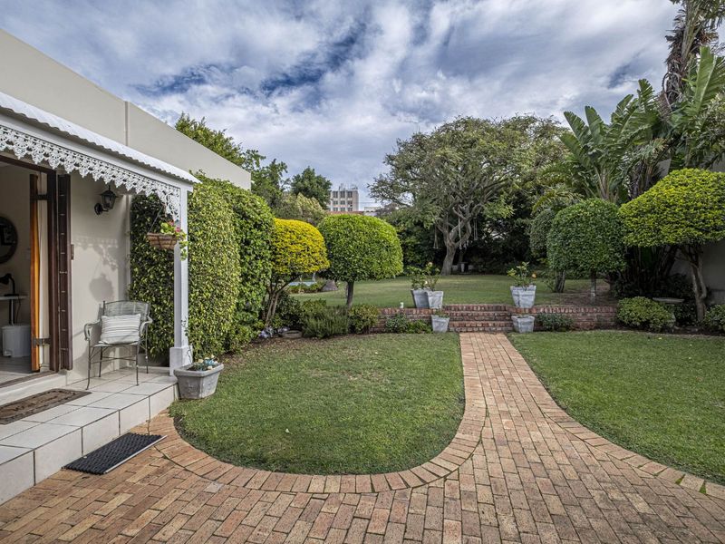 Peaceful, secure living near the provincial hospital with established landscaped garden and sunny farmhouse stoep; open-plan family home with income-potential flatlet — four beds, three baths, one garage.