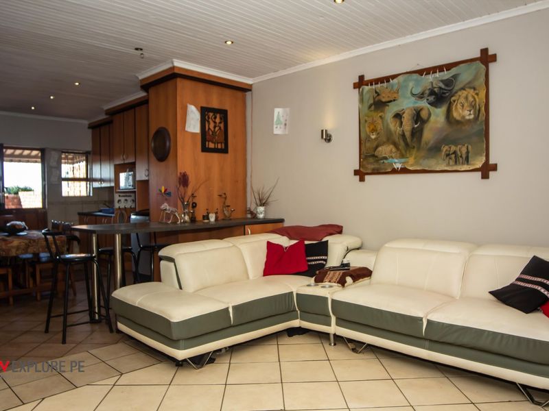 Entertainer’s dream near Newton Park schools and Greenacres — open-plan lounge to undercover stoep with built-in braai and private garden; 3 beds, 3 baths, single garage.