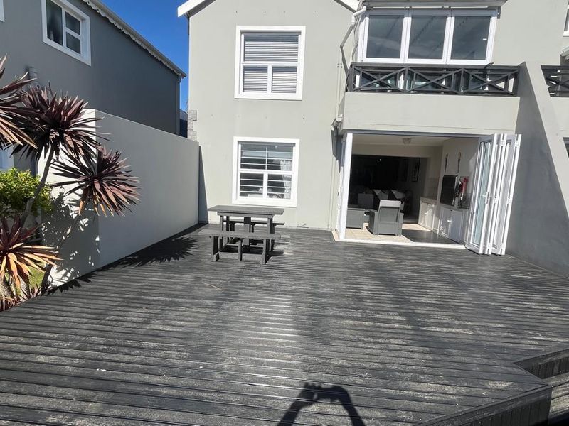 Embrace relaxed marina-side living in Jeffreys Bay with direct canal access and sea views; open-plan lounge flows to covered patio with built-in braai. Three bedrooms, 1.5 baths, one parking.