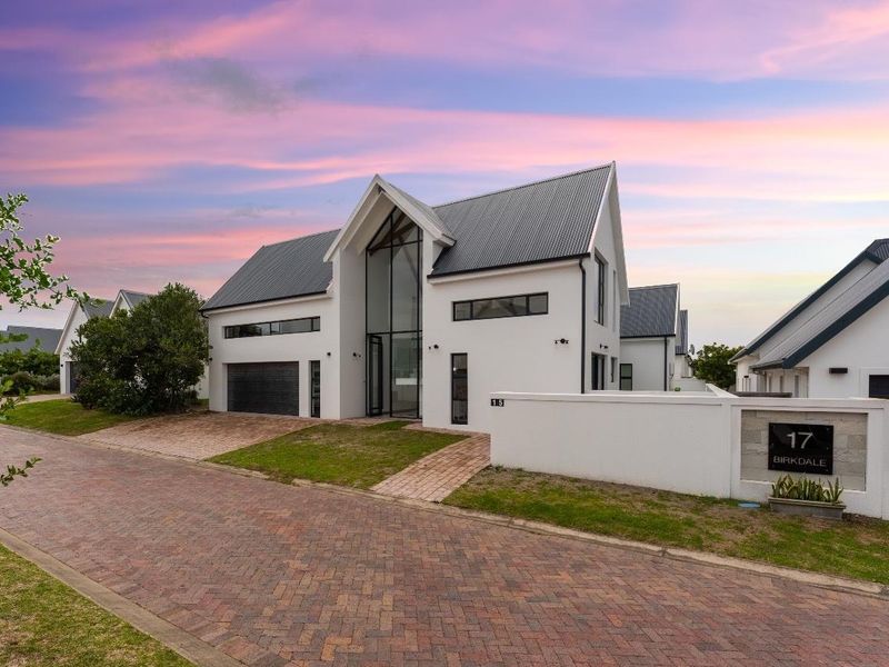 Luxury golf-estate retreat in St Francis Bay, beside the Jack Nicklaus course, river and village. Private patio with built-in braai, indoor fireplace; offered fully furnished — 4 en-suite bedrooms, double garage.