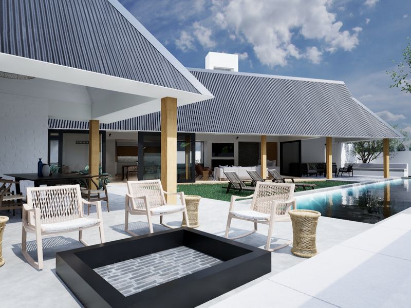 Luxury golf-estate retreat in St Francis Bay, beside the Jack Nicklaus course, river and village. Private patio with built-in braai, indoor fireplace; offered fully furnished — 4 en-suite bedrooms, double garage.
