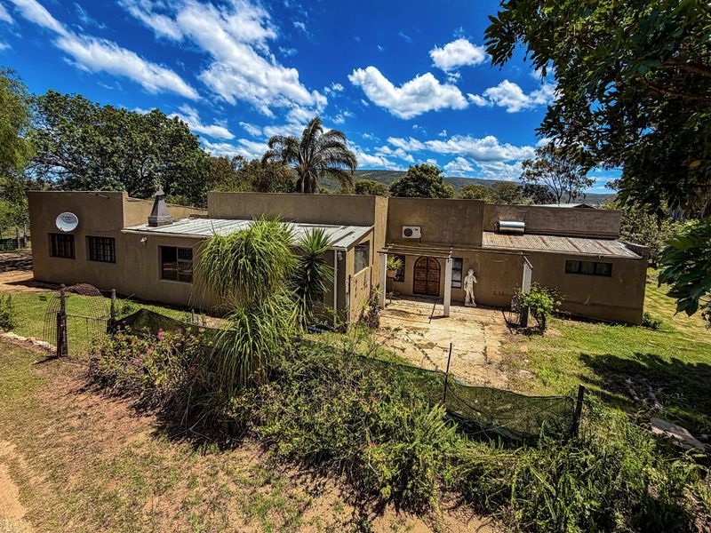 Property offers 14 hectares of untouched bushveld with two structures for conversion and a large unfinished store.