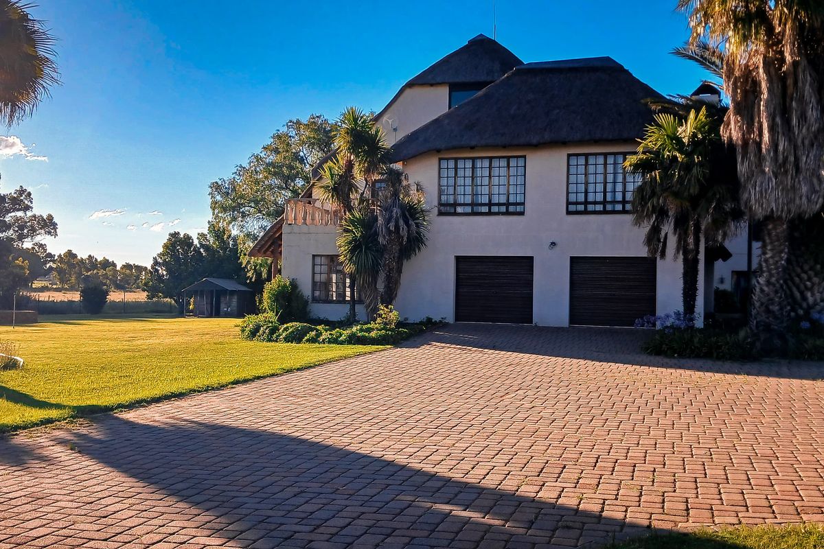Escape to expansive country living on 4.5ha with a thatched double-storey home, indoor heated pool and water feature — ideal for small-scale farming, five bedrooms and two garages.