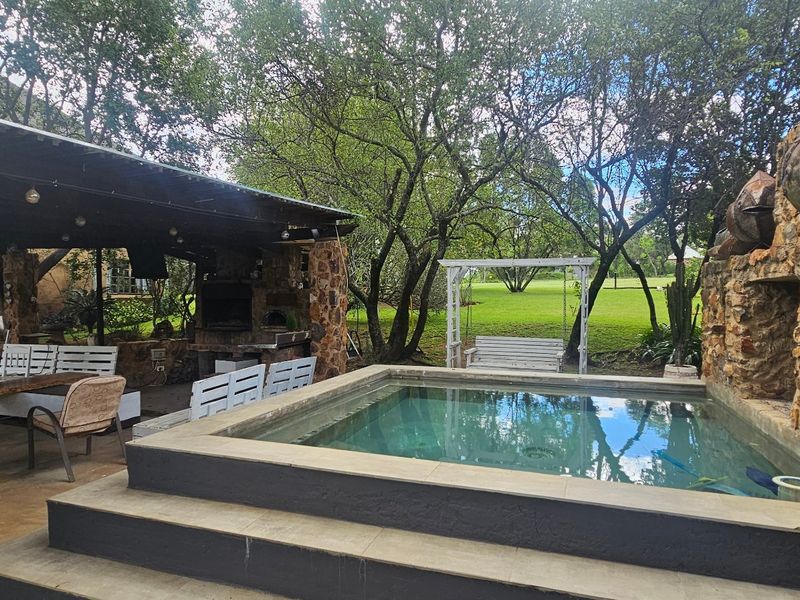 Enjoy rural living near Northern Pretoria with easy tar-road access and schools nearby; income-producing Vodacom tower, pool and lapa on 8.6 ha. Four bedrooms, 2.5 baths.