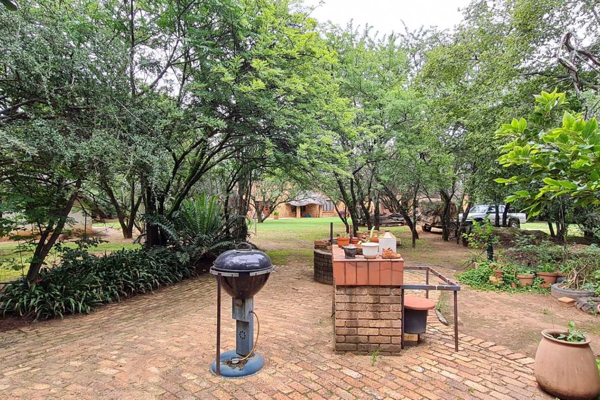 Escape to a peaceful rural sanctuary on just over one hectare, featuring thatched double-storey charm, fruit orchard and braai area, plus separate cottage — five bedrooms, five bathrooms.
