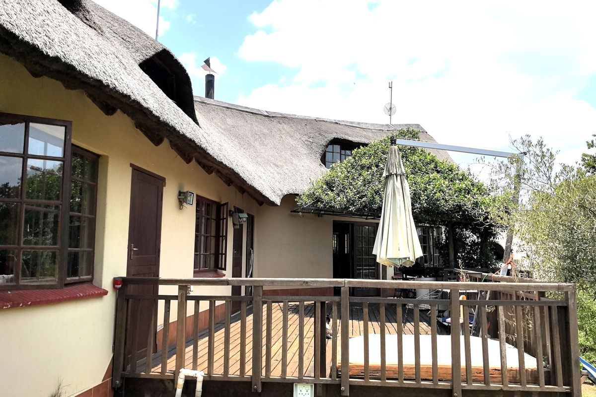 Situated on 21 hectares in Rietfontein (Hills & Dales), this stunning thatched home features three bedrooms and a versatile study/loft area.