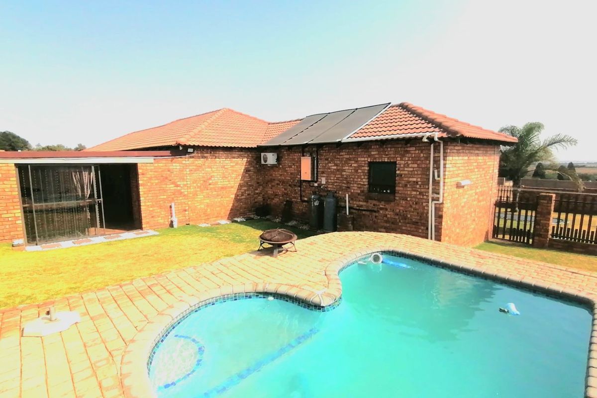 Embrace peaceful smallholding life near Nigel with wide country views and abundant water supply — private pool, self-contained flatlet, four bedrooms, three bathrooms and double carport.