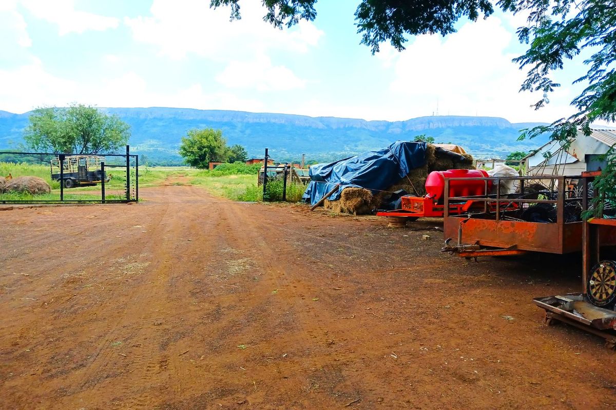 Nestled just off Van der Hoff Road near Byenes, this expansive 28-hectare farm offers the ideal mix of agricultural income and residential comfort. The property boasts 3 hectares of newly planted lucerne with guaranteed income for 5 years, 3 boreholes (one equipped at 18,000 L/hr and one with 24,000 L/hr capacity), seasonal dams, and 20 hectares of prime grazing land with additional bushveld. Infrastructure includes a large storage facility, garages, 3-phase Tshwane electricity, and irrigation systems with a 22kw pump.