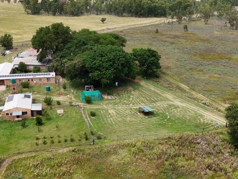 Country family living in Kloppersbos near Dinokeng Game Reserve, offering 21ha of productive land, fully off-grid with lapa and pool — seven-bedroom main, extra dwellings and double garage.